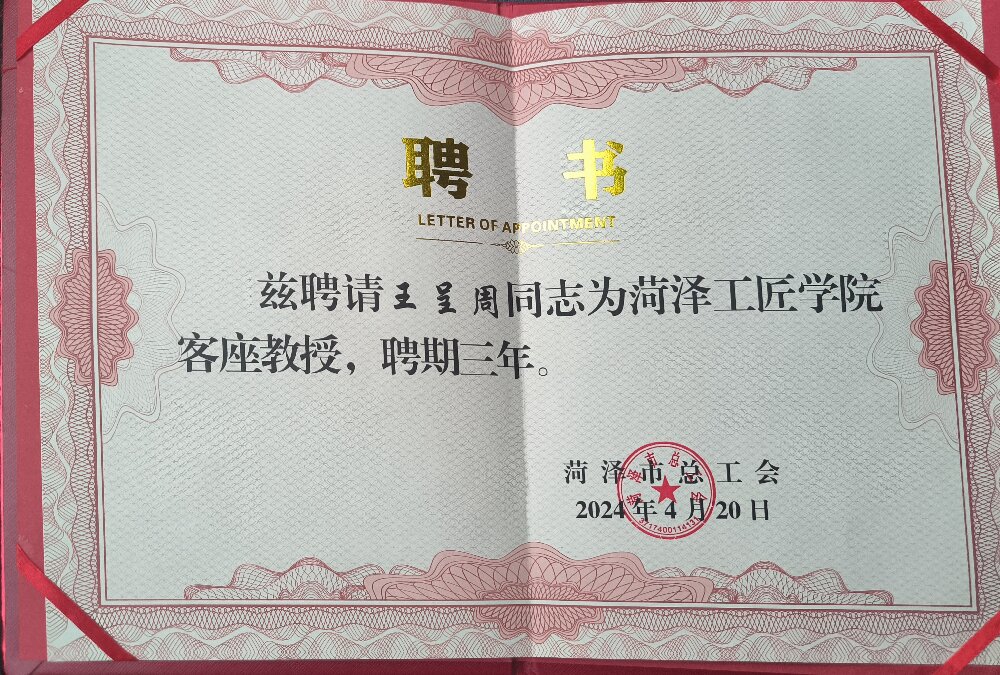 聚祥科技集團——王呈周受聘菏澤工匠學院客座教授