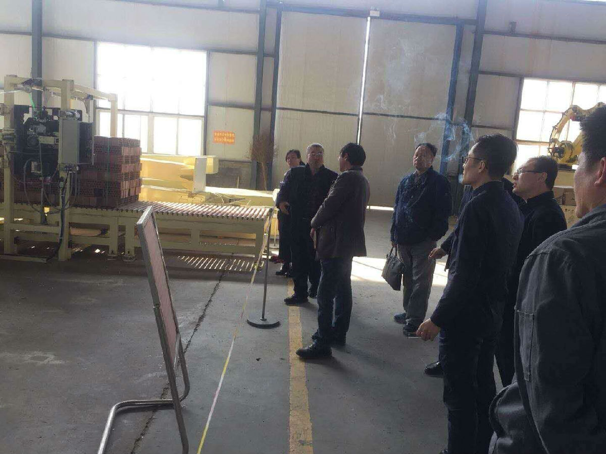 陽春布德澤、萬物生光輝。3月16日下午參加完山東省機械制造產學研對接會菏澤站專項活動的山東大學機械學院教授陶金鈺、山東大學電氣工程學院教授林明星、工信部電子第五研究所濟寧分院副院長于坤正等專家組一行,來山東聚祥機械股份有限公司實地調研。專家組首先詳細聽取了董事長、總經理龐守恩近幾年企業創新發展、轉型升級情況的介紹,參觀了公司新研發的半自動、全自動卸磚打包機系統及其他的自動化裝備,隨后在董事長龐守恩陪同下又到巨野縣順達新型建材有限公司現場參觀了聚祥公司研發生產的新型墻材生產線自動化成套裝備。
